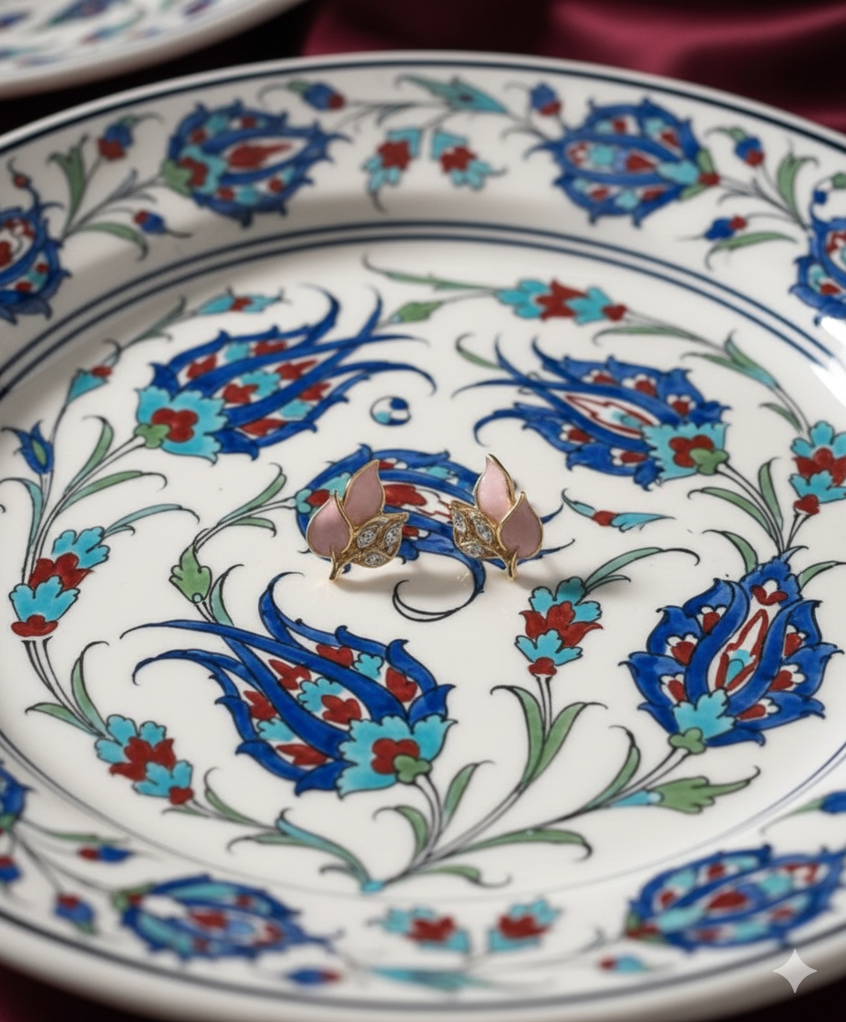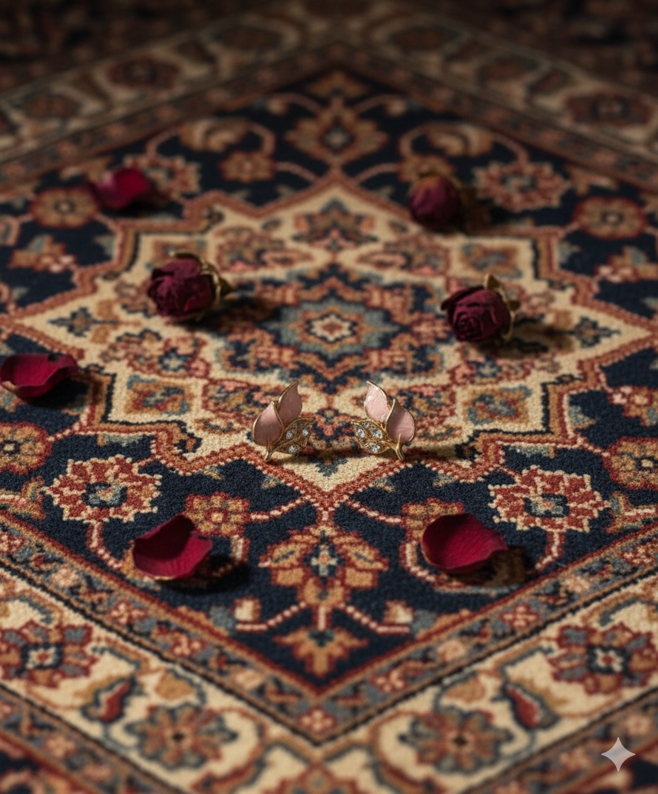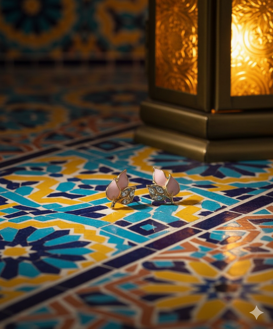 🌸 Material: Gold-plated alloy with blush enamel and cubic zirconia