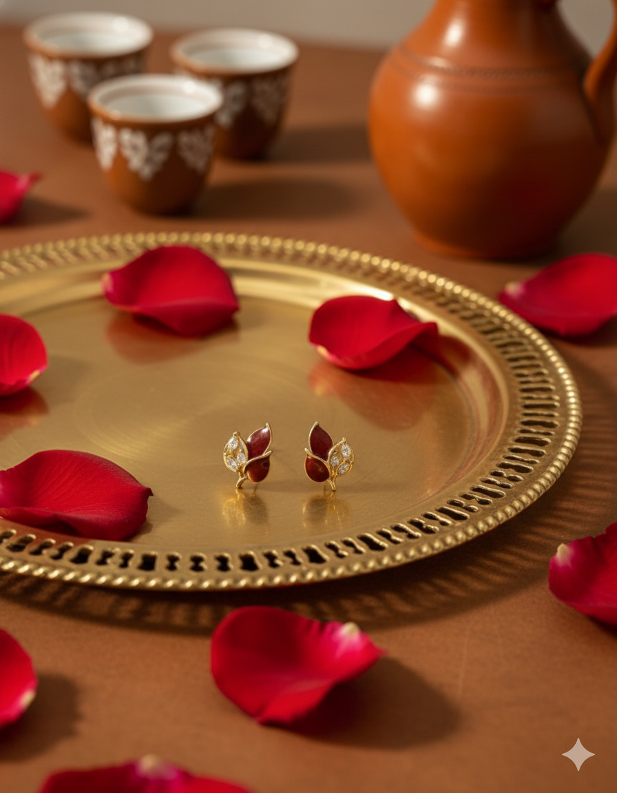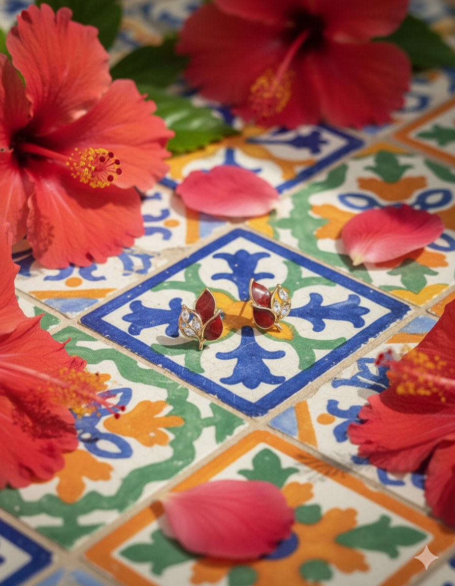 🌸 Design: Petal-shaped studs with a shimmering centerpiece
