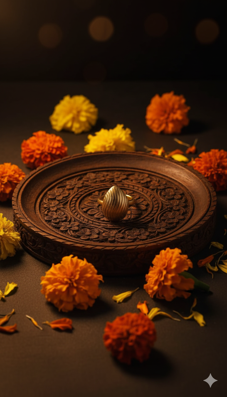 Elevate your everyday elegance with the Golden Almond Shape Ring from PRERA JEWELS. Crafted for the modern muse, this sculptural piece features a ridged, oval silhouette reminiscent of a golden almond—bold yet refined. Its textured surface catches the light with every movement, making it a subtle statement whether worn solo or stacked.