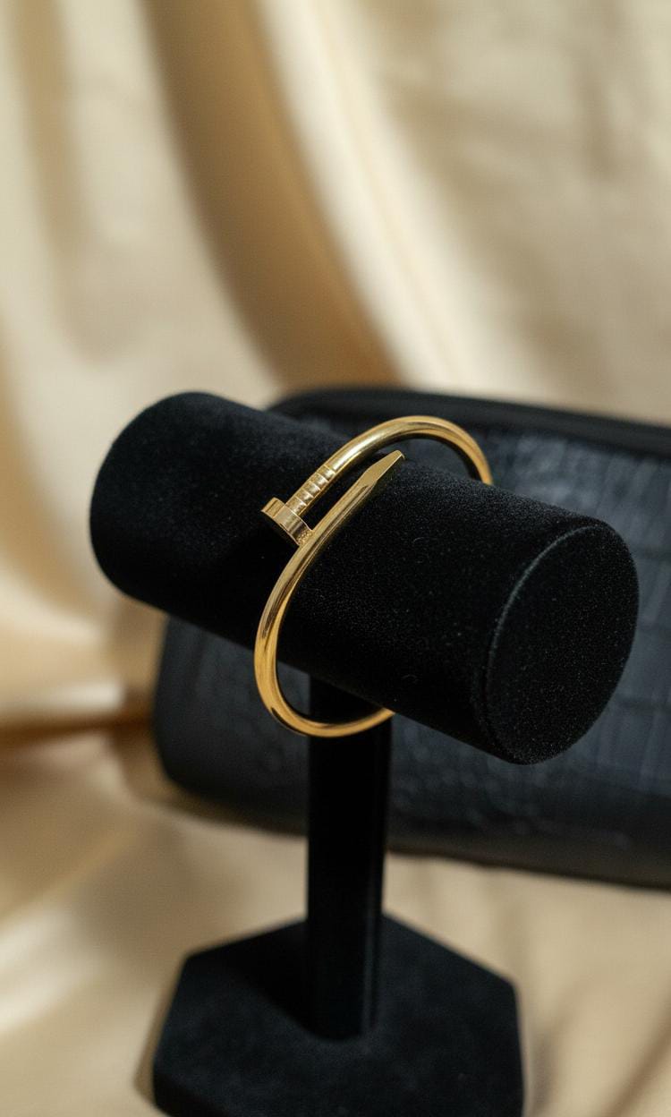 Prera Gold-Tone Nail Style Designer Bracelet For Women & Girls | Luxury Crystal-Studded Adjustable Bangle | Waterproof, Hypoallergenic Party Wear Fashion Jewellery Gift